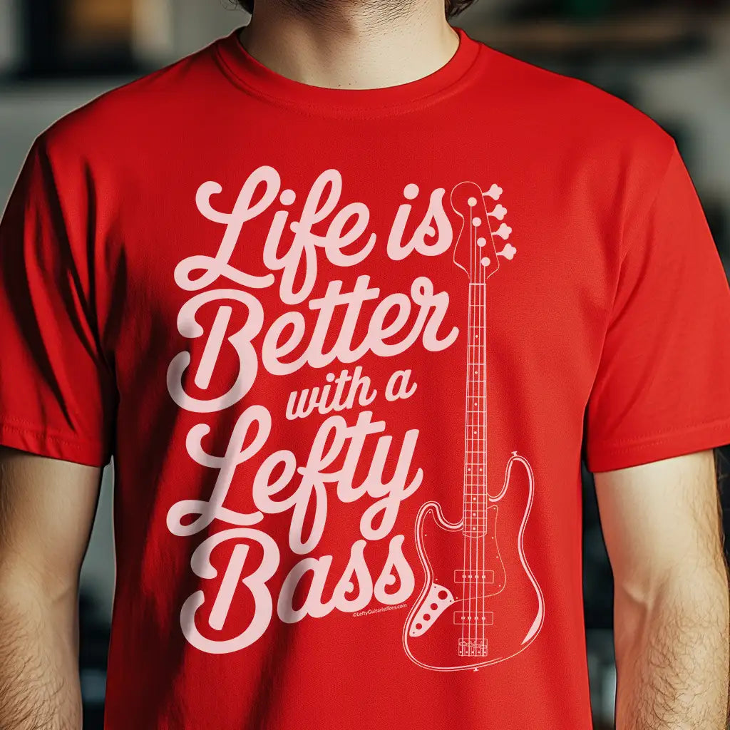 Life truly is better with a lefty bass! Celebrate your love for low-end grooves with the "Life is Better with a Lefty Bass" T-shirt.